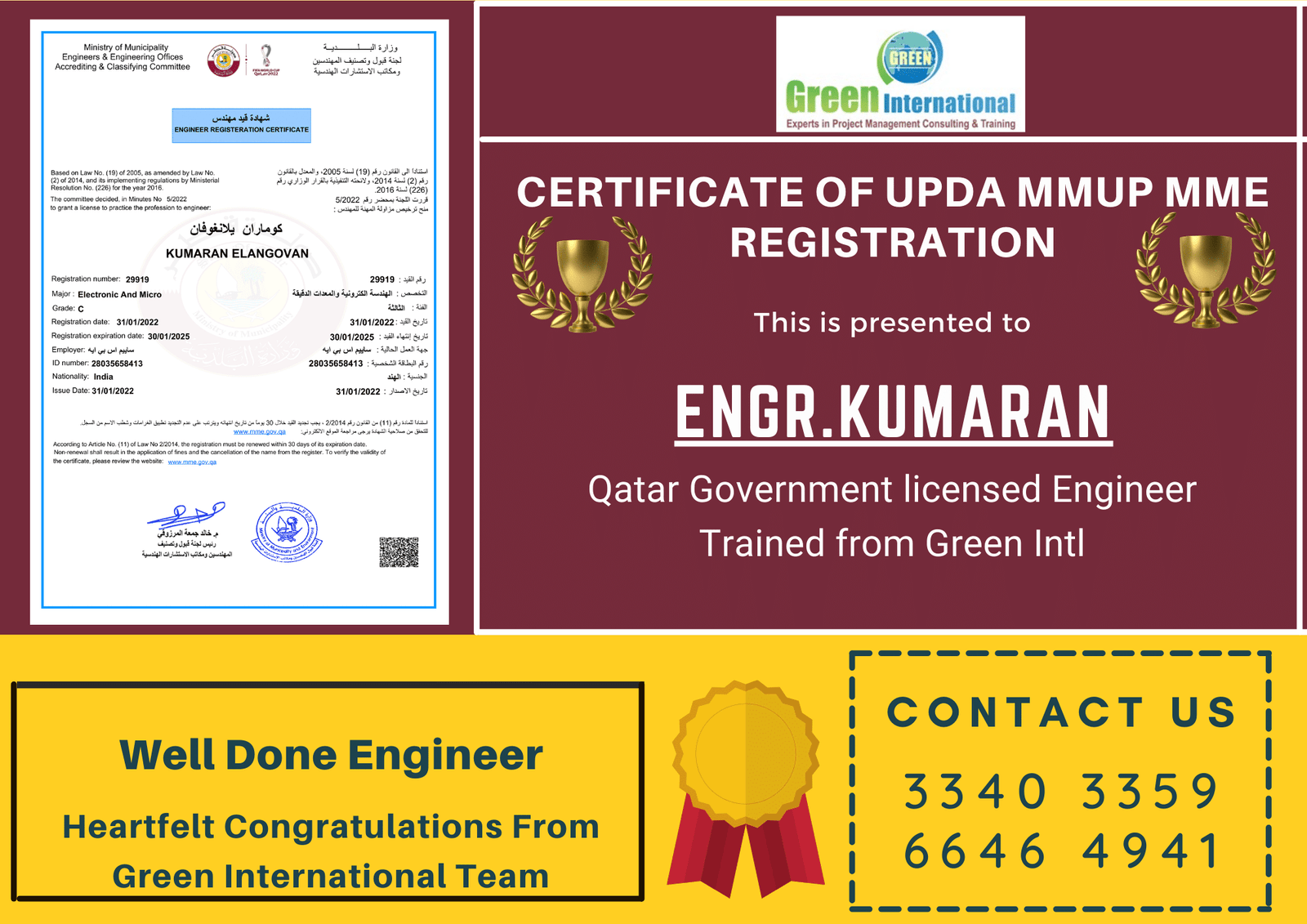 Green International’s experts Simplified your UPDA Exam Preparation with a Right & smart Preparation Strategy and MMUP Qatar Exam Questions shared by the previous training participants. Thus, Joining the Green Intl Course today to begin a structured preparation to achieve success